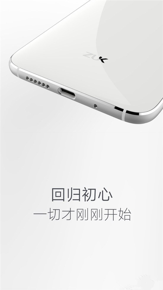 从图片来看,该机采用金属材质边框设计,底部的USB Type-C接口清晰可见,两边分别为麦克风和扬声器。另外,ZUK Z1的背部采用了弧线型设计,Logo位于机身的底部,机身后盖为白色。