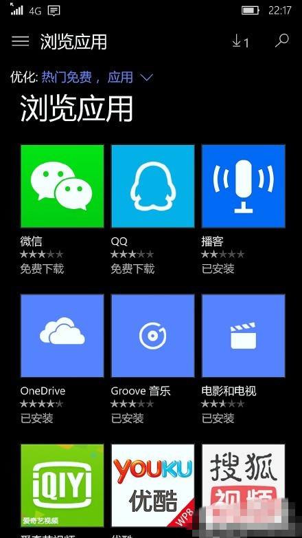 从林斌放出的截图来看,Windows 10 Mobile系统界面风格简洁,主屏依然是磁贴设计,并内置了Edge浏览器、应用商店、电影和电视、OneDrive等应用。