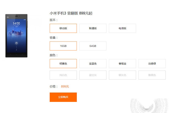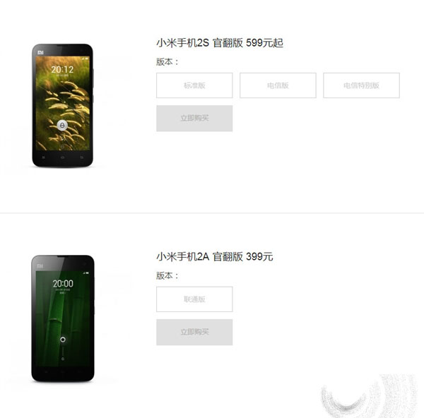 价格方面,小米手机3官翻版售价899元起、红米手机官翻版售价399元起,小米手机2官翻版售价则是699元起。