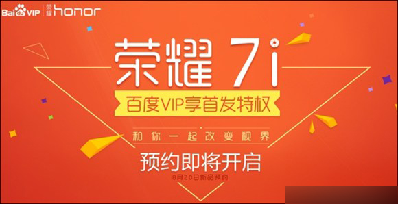 此次根据荣耀与百度VIP的合作规划,双方将拿出千万级的资源联合进行活动推广。从8月15日起,用户可登录百度VIP平台参与专享特权活动,荣耀7i作为双方首次战略合作的落地机型,将作为百度会员专享大礼贯穿整场持续至9月的活动,届时,用户可通过完成不同任务,或邀请好友一起参与活动,来获得赢取荣耀7i的机会。并且从8月20日起,荣耀7i将开始在百度VIP平台的首发预约,用户参与预约活动,还有机会获得荣耀提供的各项豪礼。