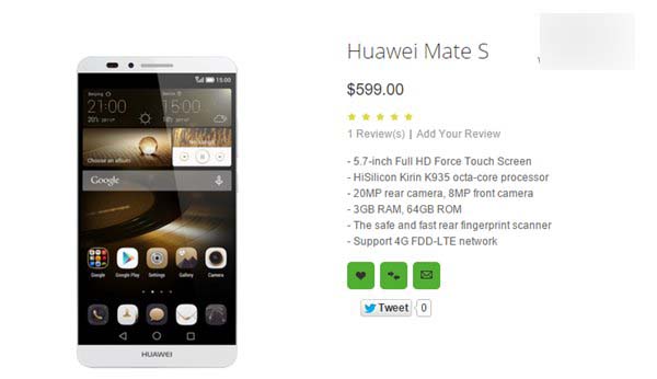 Oppomart网站信息显示,华为Mate7S的售价或为599美元,直接换算后约合人民币3827元,当然,也不排除Oppomart只是用来占位的可能性。