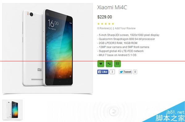 从Oppomart的页面上看,小米4c售价将达到229美元(约合人民币1455元但国内定价1499)