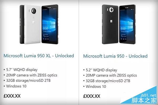 这次发布会也是微软手机发布基于Windows 10 Mobile的硬件设备,根据之前已经泄露的消息,这次发布会上微软将同时推出两款智能手机Lumia 950和Lumia 950 XL,配置都属旗舰手机级别,具体的参数之前也已经在微软的网上商店中曝光: