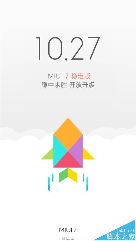 在正式发布了两个月之后,MIUI 7终于有稳定版了。今天上午,MIUI官方微博宣布MIUI 7稳定版10月27日起开放升级。也就是说从下周二开始,小米手机用户将会陆续收到OTA升级推送,或到MIUI官网下载升级包手动刷机升级。