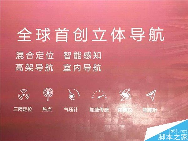 内置全球首创立体导航,与百度地图和高德地图合作,还支持室内导航。室内导航,可以自动切换室内楼层导航信息。