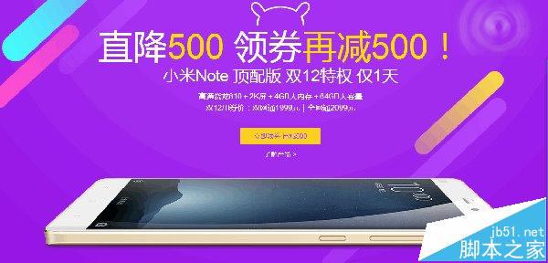 今天上午,小米官网发布促销预告,小米Note顶配版将在双12当天直降500元,此外如果使用优惠券还能再降500元,也就是说,现价3099元的全网通小米Note顶配版在双12可以以2099元的价格入手。同样,现价2999元的双网通版本小米Note顶配版也可使用优惠券,以1999元的价格购入。