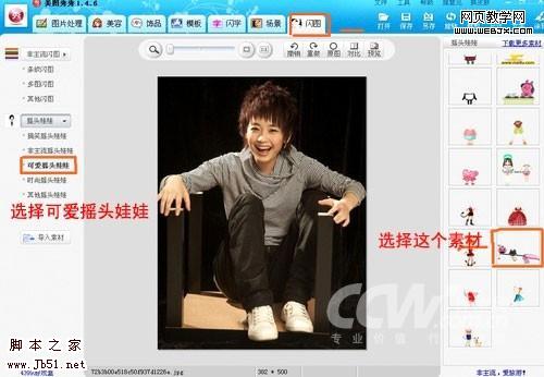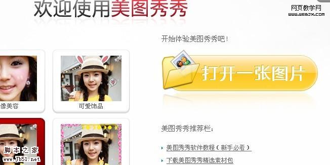 先下载安装美图秀秀(点击进入下载页面),启动软件。一开始我要做个欣宝的摇头娃娃。如图所示: