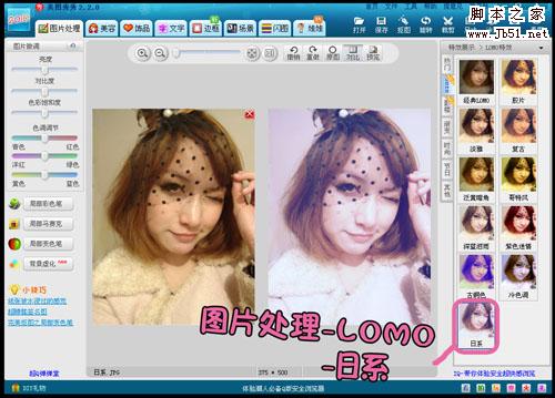 步骤很简单的哦,只要在“图片处理”菜单下的找到“Lomo”特效中的“日系”特效,点击一下就OK拉。