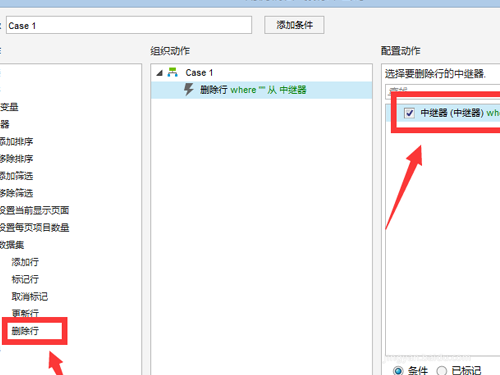 1、点击某行,则执行:先取消全部标记,在标记当前行行。详见引用。点击“删除选中项”按钮,添加交互用例,在用例编辑窗口找到:中继器--数据集--删除行,并单击。选中 中继器(中继器)字样