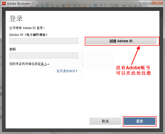 4、此步需要登录刚才我们创建的Adobe ID,如果之前没有创建ID的则可以在点击登录后的页面中创建。
