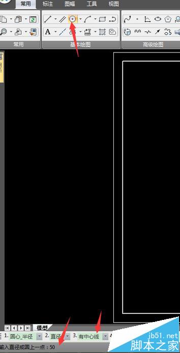 4、绘制一个直径50的圆;