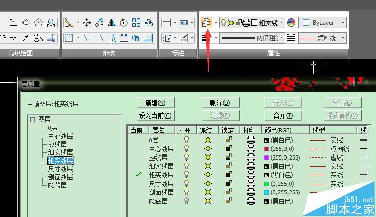 9、当然也可以图层左边的小三角进行图层的各种操作;包括颜色线型,线宽等等