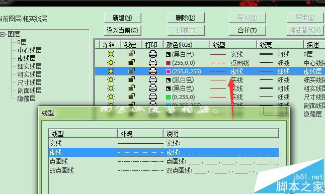8、点击线型可以修改图层中的线型;