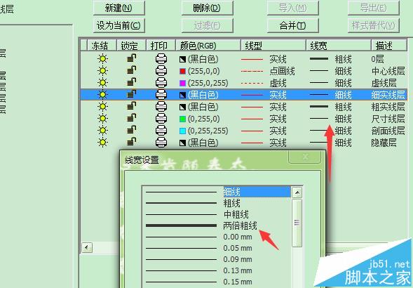 7、点击线宽可以修改图层中的线宽;
