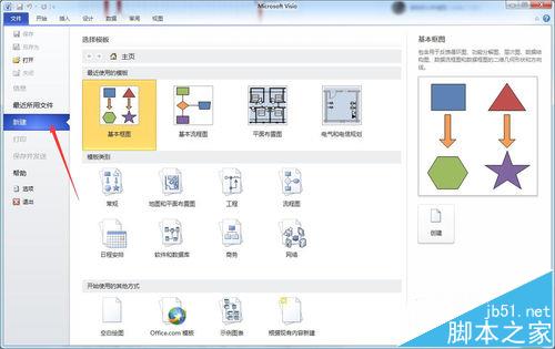 1、打开Visio软件,新建一个基本框图。如下图所示: