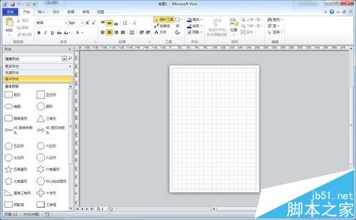 1、点击左侧形状窗格中的“基本型状”,在下方选择所需要的形状拖入绘图区即可。双击形状可编辑文字,也可在开始菜单选项的工具框中进行相应的显示设置,与Word操作相同。如下图所示: