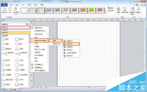 6、然后依次点击 地图和平面布置图 → 地图 → 地铁形状,即可将地铁形状添加到形状窗格。如下图所示: