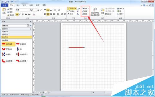 2、对于线路的填充颜色,以及线路轮廓线的颜色、粗细、虚实,可在开始菜单选项的形状工具框中进行调整(事先要选中线路)。如下图所示: