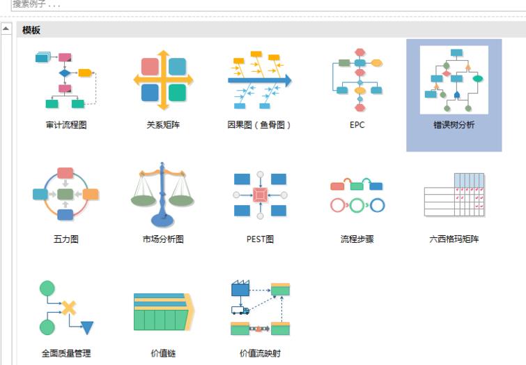 2、选择商务图中“错误树分心”分类,然后点击“创建”按钮,如下图所示: