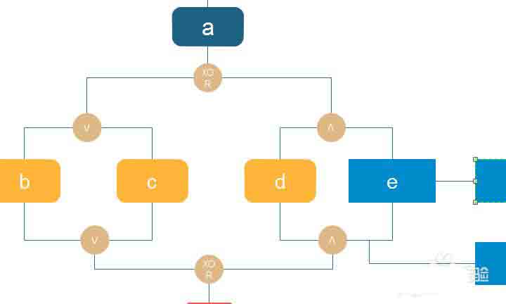 4、绘制错误树分析图,根据故障树分析形状来连接,如下图所示: