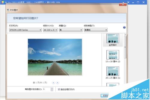9、接下来我们还要选择页面右边的照片布局,我们选择“全页布局”,然后点击页面最下方的“打印”就可以了。打印图片就完成了,大家有兴趣的话快来试试吧!