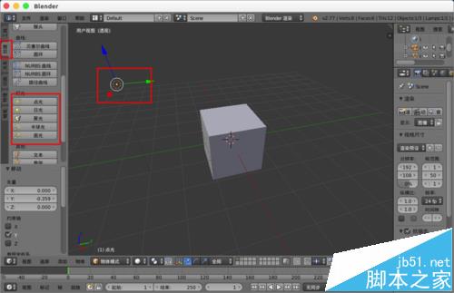 8、可以“shift+a”,或者在左边“创建” 添加一个“灯光”到合适的位置就可以了。