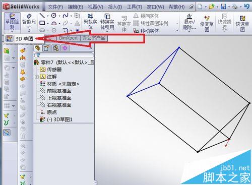 7、退出后的效果,3D草图是一个很方便的命令,不过在绘制3D草图时,某些绘制草图的命令是无法使用的,比如等距实体等。