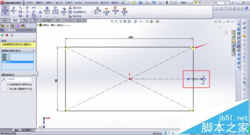 注:须将草图断开(1mm为例),否则不能进行钣金放样折弯;草图一定不能出现直角,否则不能进行钣金放样折弯,需绘制圆角