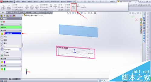 3、建立参考基准面:点击参考几何体,选择上视基准面,距离输入80mm。