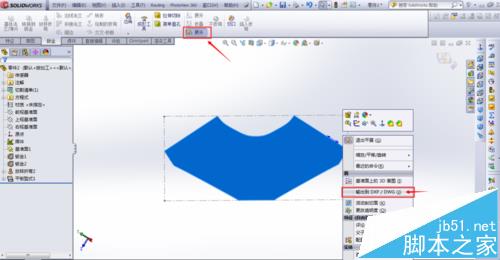 6、点击展开命令可将其展开(再次单击展开即可恢复原状),在展开平面上点击右键出现如下图所示的菜单,选择输出到DXF/DWG即可直接生成数控加工的图纸。