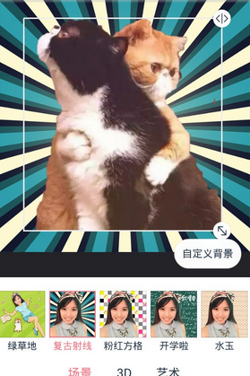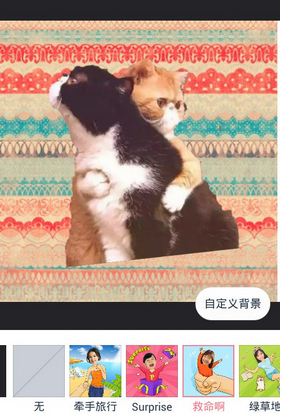 5.点击右下角的红色箭头,进入下一步,而这就是我们更换天天P图抠图背景的重要部分!在图片的右下角位置有【自定义背景】的选项。
