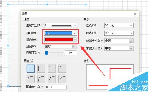 2、接着,从左侧形状栏拖入一个“矩形”,单击鼠标右键,选择“格式”-“线条”选项,将其线条设置为“纯红色,2pt”,如图所示。