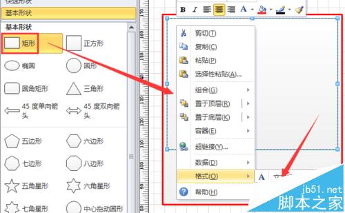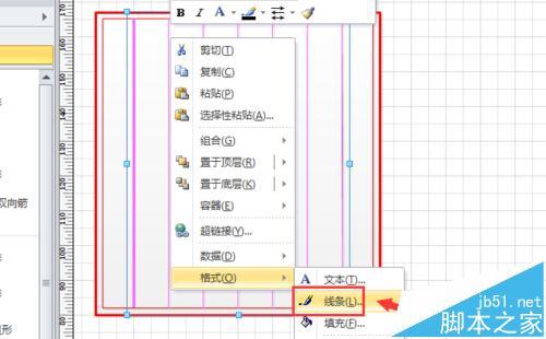 3、再从左侧形状栏拖入一个“矩形”,单击鼠标右键,选择“格式”-“线条”选项,将其线条设置为“纯红色,1pt”,如图所示。
