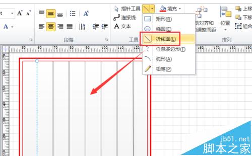 4、点选上方“折线图”工具,在刚刚绘制的小矩形中间绘制7条竖直线,并点击鼠标右键,选择“格式”-“线条”选项,将其线条属性设置为“纯红色,1pt”,如图所示。
