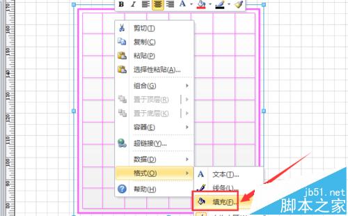 6、完成后,全选所有图形,单击鼠标右键,选择“格式”-“填充”选项,将其填充属性设置为“纯白色,无阴影”,如图所示。