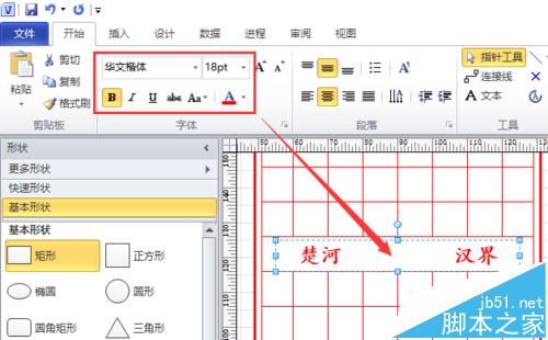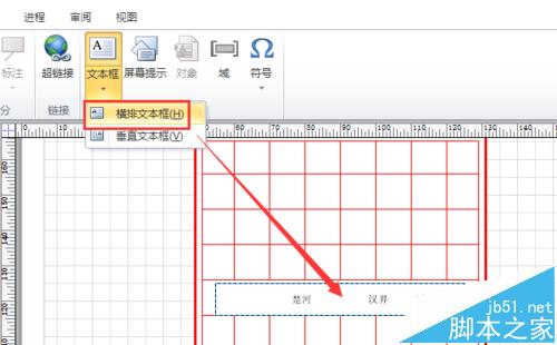8、点选“插入”选项卡下“横排文本框”工具,在刚刚调整的白条处输入“楚河汉界”的字样,并调整其大小、颜色、字体等,如图所示。