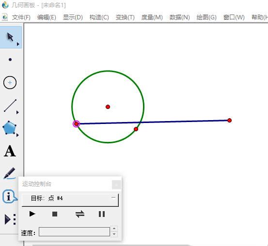 3、在状态栏中点击点的轨迹,可以观察点p在圆上运动。按运动控制台上的停止按钮,则可停止。
