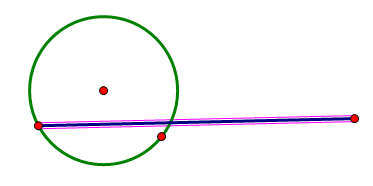 2、【画圆】在工具箱中选择【画圆工具】,在空白地方点击一下选定圆心,按住鼠标移动至平面处另一点,两点间距离为半径,即画好了圆,再点击【线段工具】。点击圆上一点,及空白处一点画好直线。如图。