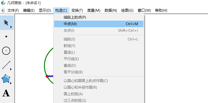 5、选中圆上动点,及中点,点击生成点的轨迹。