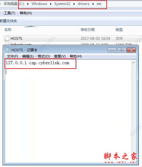 1、首先修改电脑的hosts文件,加入【127.0.0.1 cap.cyberlink.com】这个是屏蔽注册联机功能;
