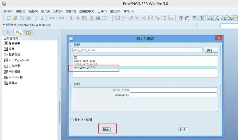 1、模板选择mmns_part_solid,在此模板下建模,长度单位是mm,力单位N,时间单位是s,若原来不是以此为模板的,后面会讲如何更改。