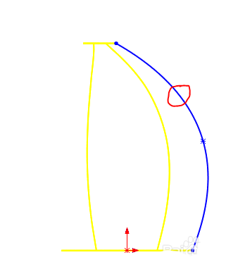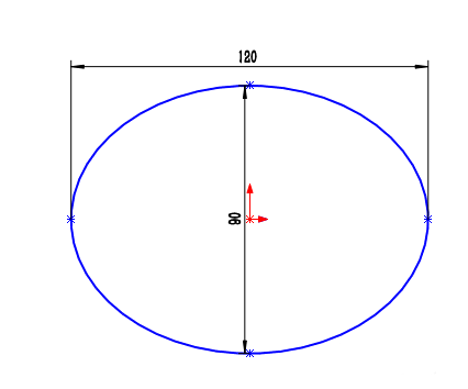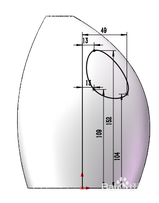 7、绘制草图。在[前视基准面]上绘制含3个控制点的闭合样条曲线,尺寸如下所示。