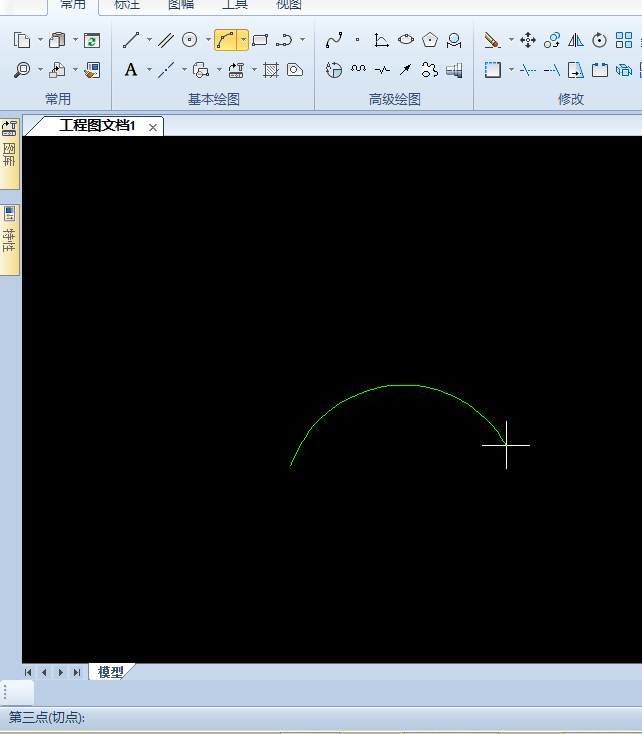 1、首先打开软件,在基本绘图里找到圆弧指令,选取三点画圆弧指令,依次点击所要求的三个点,即可画出。