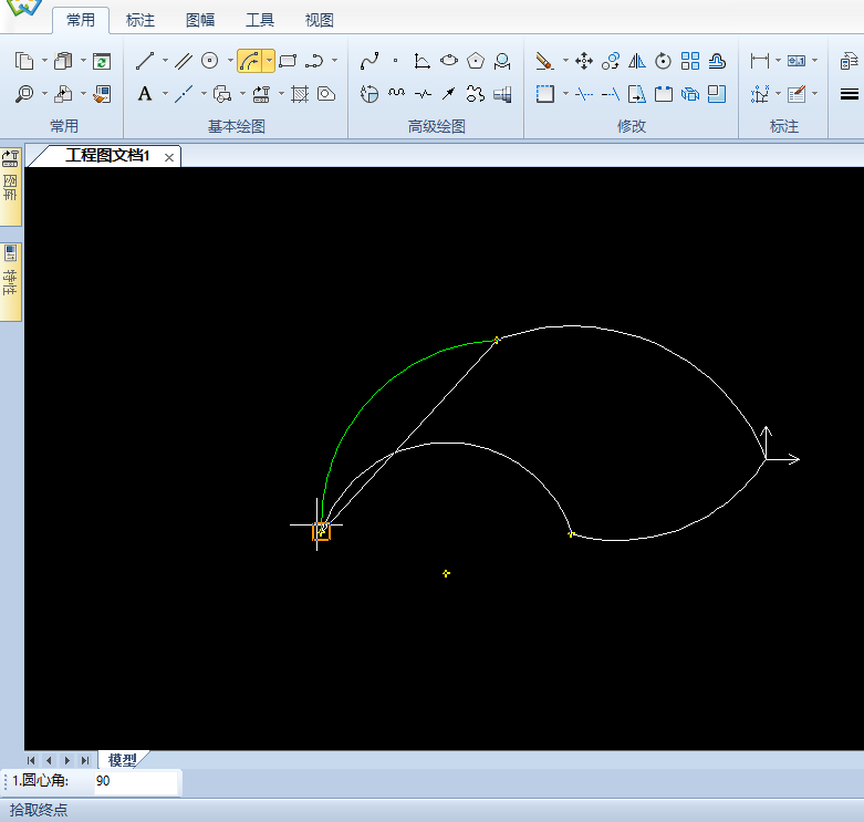 4、是起点,终点,圆心角画圆弧,方法和第二种差不多,可参考第二种方法。