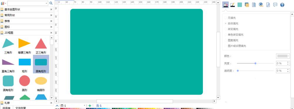 3、在”2D框图“找到”圆角矩形“,拖曳一个到画布上,如下图所示: