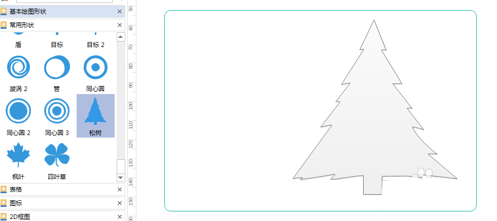 4、选中”圆角矩形“修改填充色为无,再在”常见形状“找到”松树“,拖一个到圆角矩形上,如下图所示:
