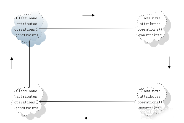 4、利用对象关系关联类,将四个类根据上下左右连接起来,如下图所示: