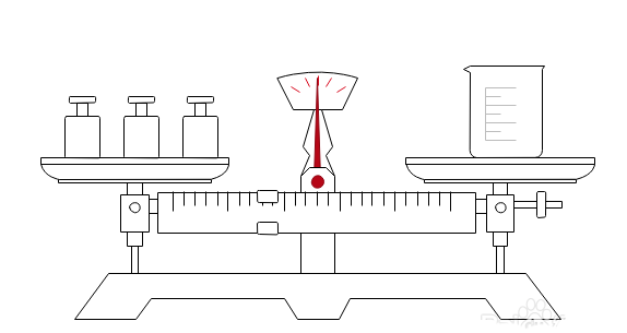 5、、在天平右侧放置量杯,调整量杯大小和位置,如下图所示: