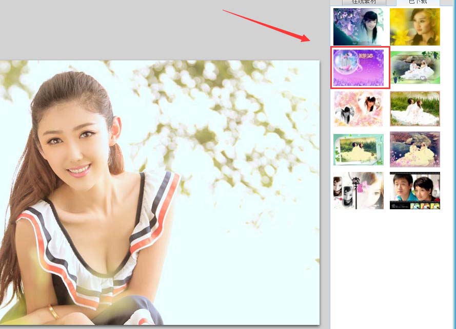 6、点击梦幻爱情选项,在右侧找到我们的主题场景选项,如图所示: