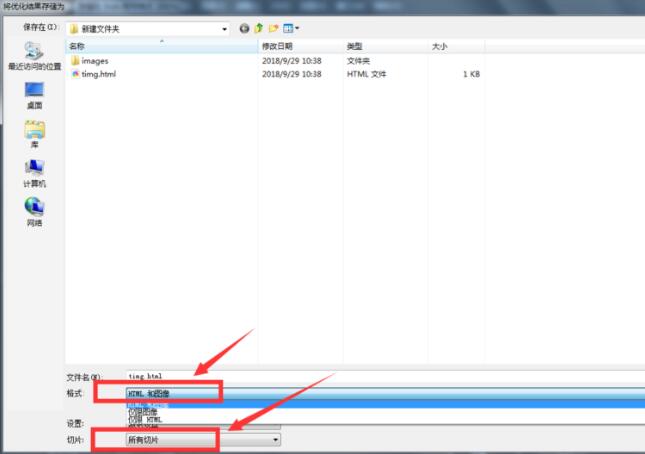必须选择保存文件格式为“HTML和图像格式”,将所有切片全部导出,
